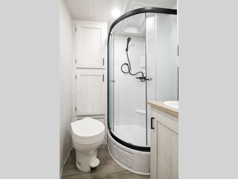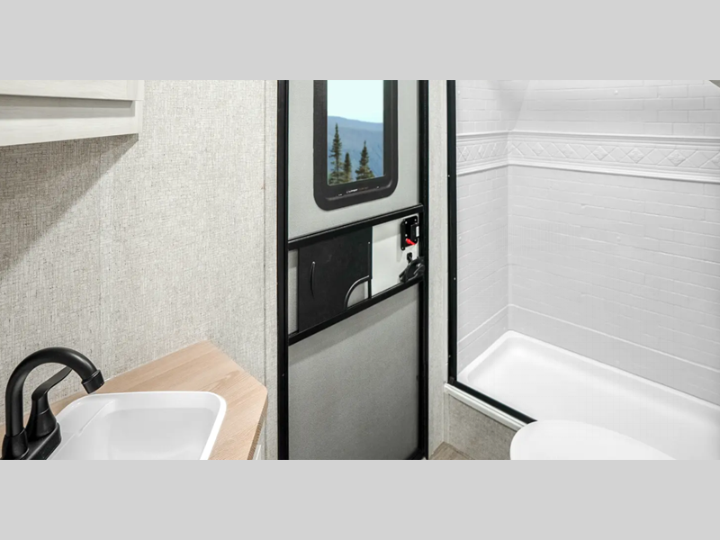 Sleeps 4 Slides 1 Length 28 ft 6 in Ext Width 8 ft Ext Height 11 ft 2 in Hitch Weight 830 lbs GVWR 9630 lbs Dry Weight 6113 lbs Cargo Capacity 3517 lbs Fresh Water Capacity 53 gals Grey Water Capacity 60 gals Black Water Capacity 30 gals Furnace BTU 35000 btu Available Beds Queen Refrigerator Type 12V Residential Inspired Cooktop Burners 2 Number of Awnings 1 Water Heater Type On Demand Tankless AC BTU 15000 btu TV Info LED Smart TV Awning Info 19' Power Axle Count 2 Shower Type Radius Similar Floorplans