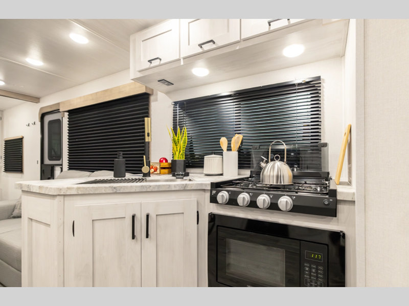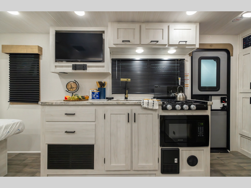 Sleeps 4 Slides 1 Length 24 ft 1 in Ext Width 8 ft Ext Height 11 ft 2 in Hitch Weight 740 lbs GVWR 7740 lbs Dry Weight 5293 lbs Cargo Capacity 2447 lbs Fresh Water Capacity 53 gals Grey Water Capacity 60 gals Black Water Capacity 30 gals Furnace BTU 35000 btu Available Beds Queen Refrigerator Type 12V Residential Inspired Cooktop Burners 2 Number of Awnings 1 Water Heater Type On Demand Tankless AC BTU 15000 btu TV Info LED Smart TV Awning Info 16' Power Axle Count 2 Shower Type Radius Similar Floorplans
