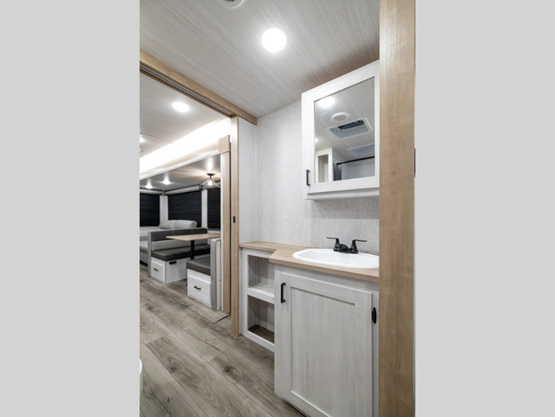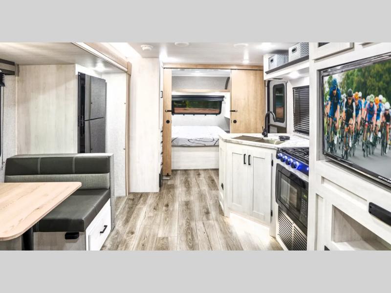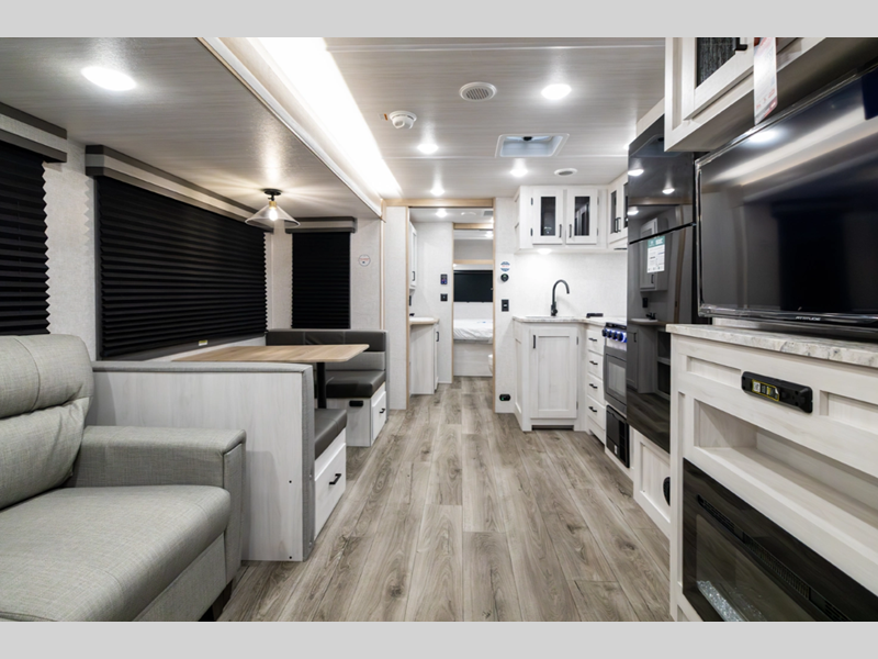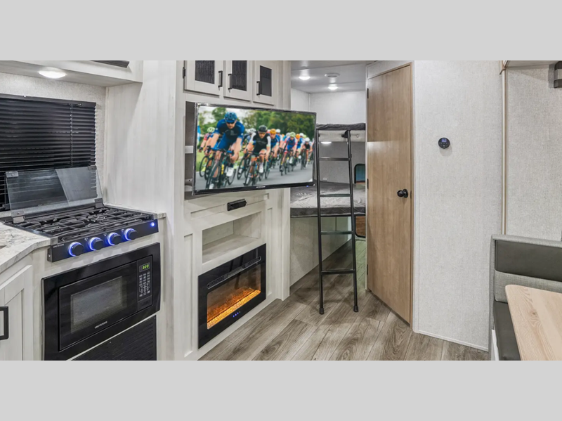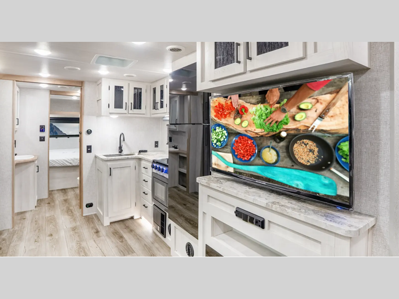 Sleeps 7 Slides 1 Length 30 ft 6 in Ext Width 8 ft Ext Height 11 ft 2 in Hitch Weight 650 lbs GVWR 7650 lbs Dry Weight 6068 lbs Cargo Capacity 1582 lbs Fresh Water Capacity 53 gals Grey Water Capacity 60 gals Black Water Capacity 30 gals Furnace BTU 35000 btu Number Of Bunks 2 Available Beds Queen Refrigerator Type 12V Residential Inspired Cooktop Burners 2 Number of Awnings 1 Water Heater Type On Demand Tankless AC BTU 15000 btu TV Info LED Smart TV Awning Info 21' Power Axle Count 2 Shower Type Standard Similar Floorplans