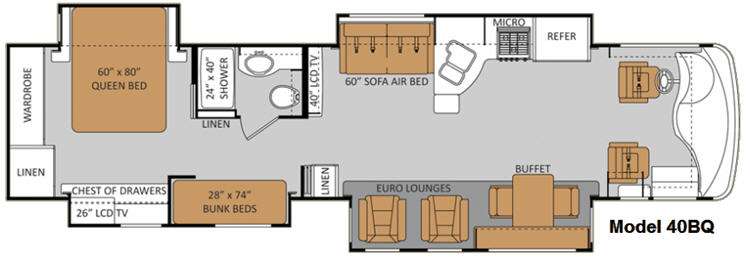 Thor Motor Coach Astoria Class A Diesel Pusher w/Rear Queen Bed Slide w/Nightstands, Wardrobe, Linen Cabinet, Chest of Drawers w/26" LCD TV Above & Bunk Bed Slideout, Bath w/24" x 40" Shower, Vanity w/Sink & Toilet, Linen Cab., 40" LCD TV in Living Area, Sofa Air Bed/Dbl. Kitchen Sink/Counter Extension/3 Burner Range w/Microwave Above & Refrigerator Slideout, Linen Cabinet, 2 Euro Lounges & Dinette w/Buffet Slide and So Much More!